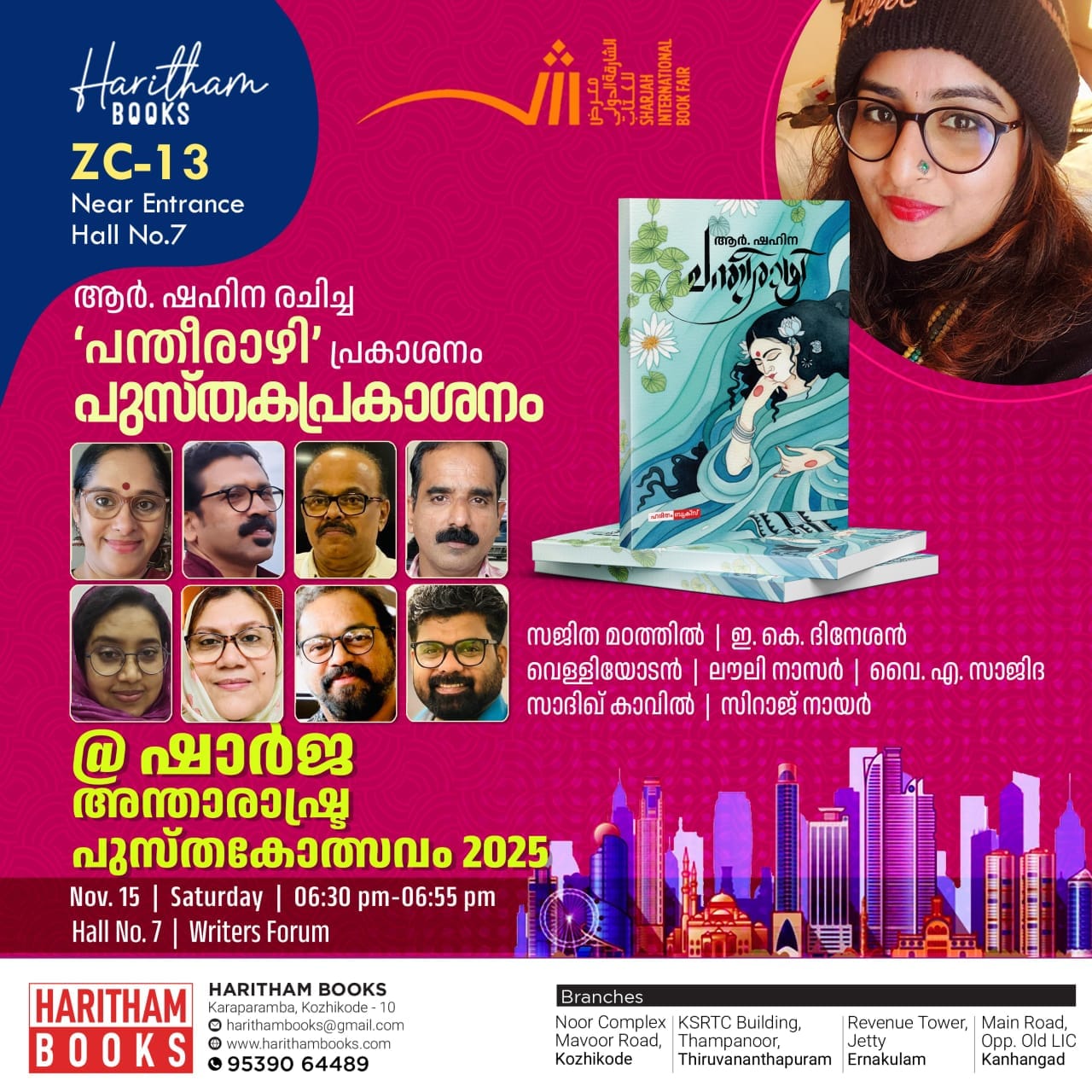 ആർ .ഷഹിനയുടെ പന്തീരാഴിയുടെ പ്രകാശനം ഷാർജ പുസ്തകമേളയിൽ